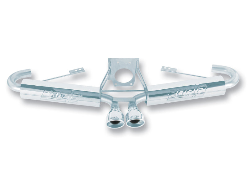 EXCEPT 5 Speed Transmission. The Porsche Boxster & Boxster S with nice power and a mid-engine platform, are great handling sports cars. BORLA R&D engineers developed a 1.75" diameter mandrel-bent high-quality T-304 austenitic stainless steel package with emphasis on weight, as the exhaust is positioned significantly back at the very rear of this vehicle. The BORLA Cat-Back™ system managed to come in at less than half the weight of stock, adding to a better balance for those winding highways these cars love. The system delivers the classic s-Type sound with no drone inside the vehicle. This part flows an impressive 263cfm more air than stock, which accounts for the added performance. A true testimony to the incredible effort of a professional staff, taking a great car and making it even better. BORLA always is a value-added component, and that was never truer than in this application. The revolutionary BORLA Cat-Back™ looks great with the dual 3.5" x 2.75" oval, angle-cut polished T-304 stainless steel tips. The incorporation of a throaty powerful sound, solid power enhancements and better gas mileage make this BORLA exhaust a winner for this exciting race-bred Porsche Roadster. While many exhaust companies talk about racing, BORLA mufflers and exhaust systems are tested every weekend on race tracks around the world. The BORLA success is unmatched, and that effort transfers to the BORLA street systems that are a perfect match for the similar Porsche legacy. BORLA backs these and every Cat-Back™ system with an unequaled written Million-Mile warranty