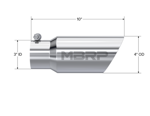 MBRP Universal Tip 4in OD 3in Inlet 10in Length Dual Wall Angled End T304