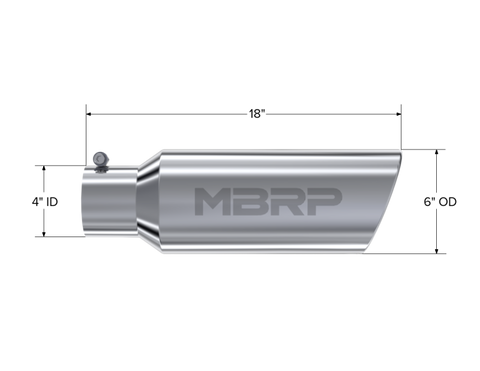MBRP Universal Tip 6in OD Rolled End 4in Inlet 18in Length T304