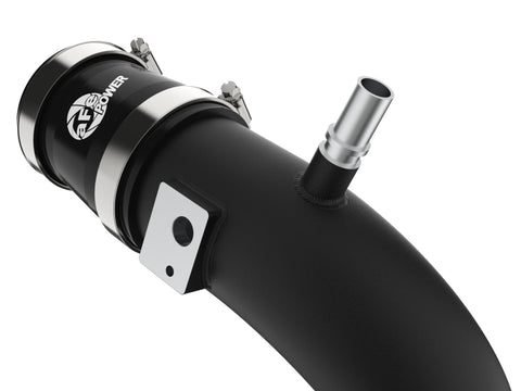 Smooth transitions in the mandrel-bent aluminum pipes decrease turbulence and minimize pressure loss, increasing horsepower and torque. This charge pipe kit provides a smooth transition between the turbo and the engine for lower operating temperatures and increased power. This kit includes high-quality, stainless-steel, smartseal clamps and heavy-duty, 5-ply, polyester reinforced silicone couplings. This charge pipe kit also features factory style quick-connect adaptors with o-ring seals to ensure a leak-free fit while maintaining superior strength and durability. Finished in wrinkle black powder coating with a unique laser-etched aFe POWER logo for a custom look.