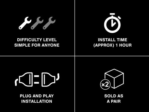 Upgrade the appearance and visibility of your Jeep Wrangler with a set of Axial LED Halo Headlights. These Axial Headlights feature a great looking integrated dual function accent halo. The halo functions as both a Day Time Running Light (DRL) and as a Turn Signal Indicator. The halo glows white as a DRL and amber when active as a turn signal. These Axial LED Headlights will certainly be much brighter than your stock headlights and feature a 6000K cool white color temperature. Featuring premium high output LEDs, these Axial Headlights out put 5400 lumens for the High Beams and 3600 lumens for the Low Beams. With a 60% lower power consumption than standard headlights, these LED Lights have a life span of up to 50,000 hours. Designed to perform in the harshest of elements, these Axial Headlights feature a rugged housing with a tough as nails clear polycarbonate lens. Each Headlight is epoxy sealed to prevent moisture from harming the state of the art electronics found inside. These Axial LED Headlights can take just about anything the trail can throw at them. With the included H4 - H13 wiring harness adapters (needed for 2007+ models) installation can be completed in under 30 minutes. It should be noted that the DRL/Turn Signal halo light will require additional wiring for operation. Installation instructions are included. These Axial 7-Inch Round LED Halo Headlights pass both DOT (U.S. Department of Transportation) certification and SAE (Society of Automotive Engineers) certification requirements making legal for street use. These aftermarket LED Headlights are intended for use with factory halogen headlight equipped models. In order to use these aftermarket LED Headlights on a Jeep that is already factory equipped with LED headlights, you will require a set of factory halogen headlight buckets – not included.