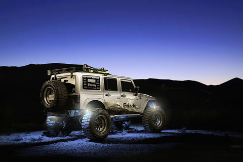 These new super durable and intensely bright white LED rock lights from ORACLE Lighting feature over 2,400 Lumens of output (brighter than most headlights). Drive with confidence using these white rock lights with sturdy housings that withstand any terrain you put them through on the streets or off-road. Our rock lights easily install for applications on trucks, Jeeps, trailers, power sport vehicles, and more. With multiple options on the market, you want the best quality for a good price when choosing white rock lights. Using quality Cree XQ-Eare chips and expertly-engineered components, you get our 4 intensely bright white rock lights in a kit for the same price as other brands who charge up to $100 per light. Get the same brightness and quality for a fraction of the price with ORACLE Lighting underbody LED white rock lights!