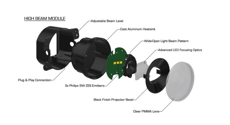 The ORACLE Lighting Vector Series Grill for the Jeep Wrangler JK is the first full-featured replacement grill with integrated LED light emitters for Low Beam, High Beam, as well as a Dynamic LED DRL. This unique design is equipped with an array of application-specific LED lighting features and has the aggressive styling and rugged durability that Jeep owners demand. These modules are now robotic-ally sealed to create an Ingress Protection Rating of IP68 which will keep moisture out of your fixtures even from exposure to pressurized water spray and brief underwater submersion. The DRL modules are now mounted with hardware rather than adhesive to make these parts easier to remove for grill painting and maintenance. Each LED beam can be independently adjusted in order to put light on the road without blinding oncoming traffic, especially important for lifted Wranglers. The separate driving and Low Beam lights allow for proper light distribution for optimal road legal light. The Vector Series Grill features an impressive 5,600 Combined Lumen Low Beam with advanced optics for precision lighting that illuminates the road for increased driver visibility without creating glare that can blind oncoming traffic. 7,200 Combined Lumen High Beam for illuminating any dark landscape. The simple wiring connection is "Plug and Play" thanks to the included harness adapter. Additional features of the ORACLE Lighting Vector Series Grill include an integrated LED Daytime Running Light which increases driver safety. This DRL also features a unique "startup sequence" Dynamic LED display. Another safety feature is the LED Turn Signal that is 4x brighter than the factory turn signal lamp. The components of this project were CAD developed to insure that the fit and finish of this product matches factory quality and fitment.