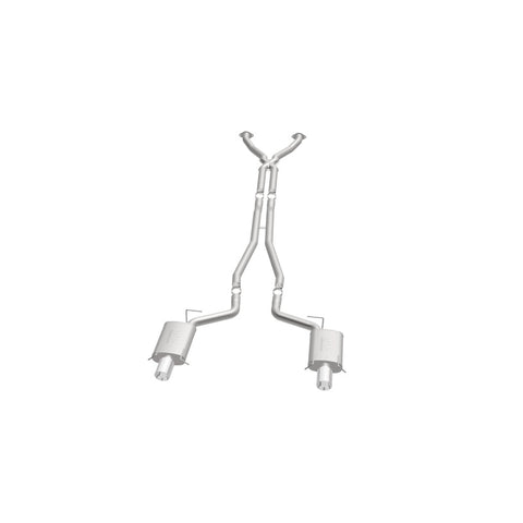 The MagnaFlow 2004-2005 Cadillac CTS Street Series Cat-Back Performance Exhaust System 16636 brings out the personality of your 5.7L 2004-2005 Cadillac CTS with our signature resonant, powerful engine tone and dyno-proven performance. Thanks to its fast-flowing, mandrel bent 2.5in. main piping and 2 Straight-Through mufflers ending in a Dual Split Rear exit with 4in. Polished Welded-On Double Wall Angle Cut Folded Edge tips, this Cadillac CTS exhaust kit has the performance chops to match its sporty sound and appearance. Upgrade your ride to the next level with an exhaust that has the pipes to put other Cadillac CTS's to shame. With this system your vehicle will be producing Moderate exterior and Mild interior sound levels while leaving other cars and trucks feeling envious at every stoplight. Exhaust kit 16636 features a cat-back layout that replaces your ride's stock exhaust components from near the catalytic converter on back. Extensive 3D scanning during development has resulted in a direct-fit design that you can easily install yourself. 16636 is produced using CNC precision robotic manufacturing techniques and is backed by MagnaFlow's 1-year limited finish warranty and limited lifetime construction warranty.
