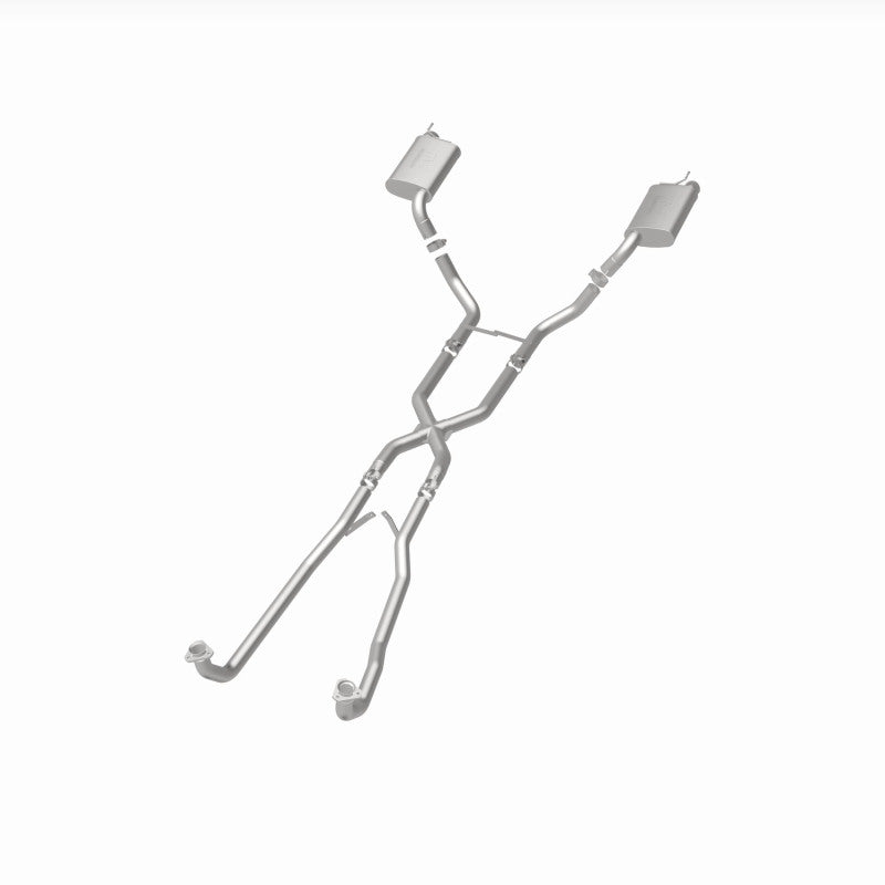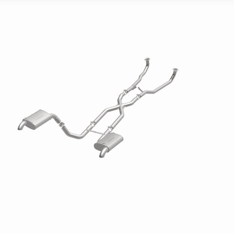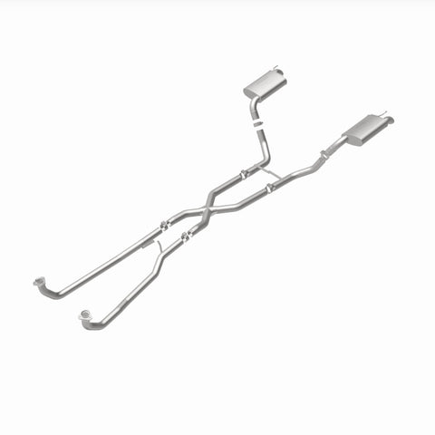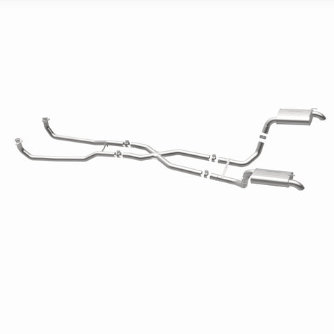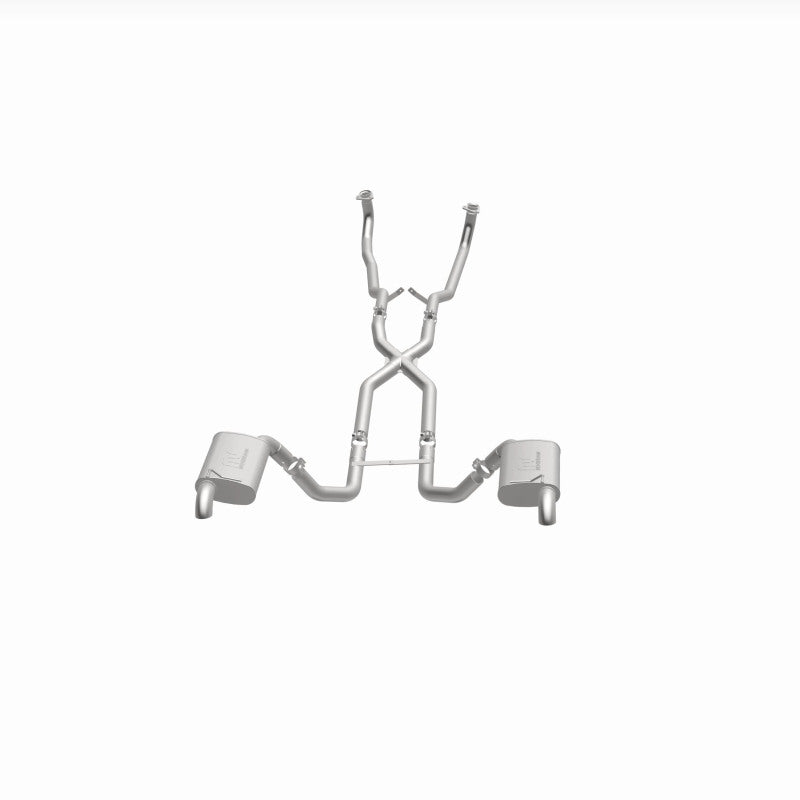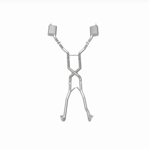 The MagnaFlow 1968-1973 Chevrolet Corvette Street Series Crossmember-Back Performance Exhaust System 16842 brings enhanced engine sound and dyno-proven performance to your 5.3L, 5.7L 1968-1973 Chevrolet Corvette with a healthy helping of our deep, resonant signature exhaust note at Moderate exterior and Mild interior sound levels. Thanks to its durable, corrosion resistant stainless steel design, this Chevrolet Corvette exhaust system will handle whatever tarmac you decide to leave your mark on. This performance exhaust kit features a crossmember-back layout designed to replace your Chevrolet Corvette's exhaust system from the crossmember on back. With its fast-flowing, mandrel bent 2.5in. main piping and 2 Straight-Through mufflers ending in a Dual Split Rear exit with 2.5in. Satin Welded-On Single Wall Turndown Cut Edge tips, your muscle car will be sounding as awesome as it looks. Extensive 3D scanning during development has resulted in a direct-fit design that you can easily install yourself. 16842 is produced using CNC precision robotic manufacturing techniques and is backed by MagnaFlow's limited lifetime construction warranty.