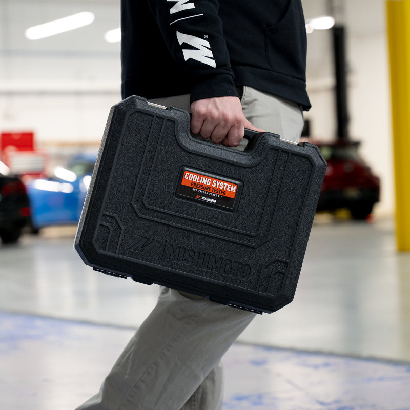 If you've got a paddock of project cars, a fleet of work vehicles, or just like to help all of your friends with their daily drivers, you need tools that help you get maintenance done fast. This Mishimoto 28-piece cooling system pressure tester and vacuum refill tool kit lets you diagnose and fix cooling system issues quickly so you can get back on the road or track faster. Once you've found and fixed your leak, use the vacuum purge and refill tools to fill the cooling system and avoid hours of waiting for the air to bubble out on its own.This 28-piece kit includes 17 color-coded adapters and 3 test caps to fit almost every vehicle, as well as adapters for testing many common radiator caps. This tool kit is packaged in a durable plastic case that keeps your tools safe and organized and is backed by our Mishimoto Lifetime Warranty for a lifetime of service.