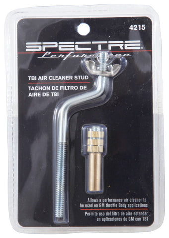 Spectre's Air Cleaner Mounting Hardware offers show quality fastening for a wide variety of applications. This 5 inch offset stud is designed to fit Chevy TBI throttle bodies and features 1/4 inch threading. Constructed from high quality steel, this product is designed to be used with an OEM air cleaner spacer, and is compatible with single and dual stud throttle bodies.
