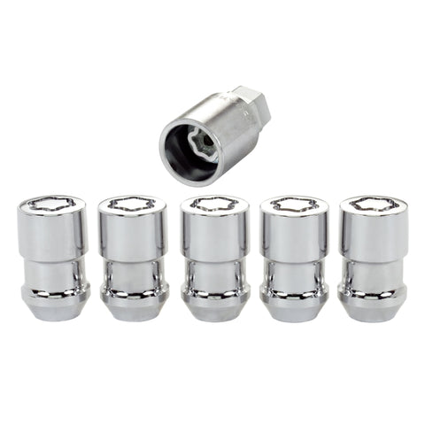 Protecting the world's finest wheels and tires from theft since 1964.; McGard manufactures wheel locks in the USA to meet or exceed O.E.M.; standards for safety and durability.; Presently, McGard is an Original Equipment wheel lock supplier to most automobile brands around the world.; These easy-to-use, one-piece wheel locks function like regular lug nuts, but require a special key tool for installation and removal.; The steel collar on the user friendly key guides the key into the lock pattern.; The collar holds the key in alignment for easy installation and removal.; The computer generated key designs allow for an infinite number of key patterns.; The extra narrow pattern groove on the lock resists the intrusion of removal tools into the pattern.; Every McGard wheel lock is fully machined from restricted chemistry steel made specifically for McGard and through-hardened for its unsurpassed level of security.; McGard's plating process includes several layers of nickel and one layer of microporous chrome producing a superior finish while protecting against rust.; For use on sport/utility vehicles with O.E.M.; rear mount spare tire carrier.; One lock for spare, four locks for road wheels, one matching key.; This product may contain globally sourced materials/components.