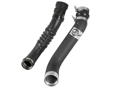 This BladeRunner Charge Pipe kit delivers more flow and is more robust to handle higher horsepower and boost than the plastic factory Charge Pipe on the 2017-18 GM L5P diesel. TIG-welded and designed from aircraft-grade, mandrel bent aluminum tubing, the BladeRunner I/C tube features factory mounting locations, quality hardware and 5-ply silicone couplings for a secure, hassle free installation. Flow and Performance: This cold side tube is constructed of 3-1/2" mandrel bent, powder coated aluminum tubing for maximum flow and performance. The smooth transition bends decrease turbulence and minimize pressure loss, increasing horsepower, torque and lowering EGT's. Featuring one (1) 1/8" NPT port for connecting a pressure sensor or water methanol injection and maintains the factory air temp sensor. Perfect Fit: Installs on the cold side to transfer cooled air smoothly to the engine for better performance. Utilizes the factory mounting locations to provide stability for a hassle-free installation. This kit also includes a factory-style quick connect adapter made from 6061-T6 billet aluminum with an O-ring seal for a quick and simple install. Quality Hardware and Couplings Included: Includes high quality stainless steel spring-loaded T-Bolt clamps and heavy-duty 5-ply polyester reinforced silicone couplings pressure tested to 200 psi for long lasting strength and durability. Custom Appearance: Finished in wrinkle-black powder coating and badged with a unique aluminum laser-cut aFe Power logo welded on for a custom look.