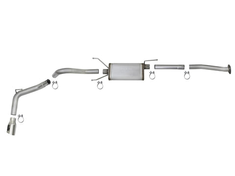 Release the untapped horsepower, torque and sound from your Toyota Tacoma L4-2.7L / V6-3.5L with aFe POWER Mach Force Xp exhaust system. Constructed from 2-1/2" to 3" mandrel bent 409 stainless steel for improved flow and long-lasting performance, the system is 100% hand MIG-welded by certified craftsmen for race proven strength and durability. The Mach Force Xp system features a high-flow, straight through designed, 409 stainless steel muffler for improved performance gains while delivering an aggressive tone. The Mach Force Xp is finished off with a 4-1/2" diameter, stainless-steel exhaust tip for a custom look and includes quality hardware and clamps for a hassle-free install. Flow and Performance: This Mach Force-Xp Series exhaust system is constructed of 2-1/2" and 3" mandrel bent 409 stainless steel for maximum flow and low turbulence increasing torque, horsepower and improved throttle response. Aggressive Sound: A high-flow, straight through designed 409 stainless steel 18" length muffler improves performance gains across the power band while producing an aggressive tone. 4-1/2" Exhaust Tip: Finishing off this system is a 4-1/2" black, angle-cut, stainless steel exhaust tip w/ laser-cut aFe POWER badge for quality brand recognition and a custom-styled look. Perfect Fit: OE-style bayonet hangers are used to maintain a stable pi pe location during any driving conditions. The bayonet tip holds the hanger bushing in place for an OE style, long lasting fit. Installation is a Snap: This Mach Force-Xp exhaust system uses all factory mounting locations providing stability and a hassle-free installation.