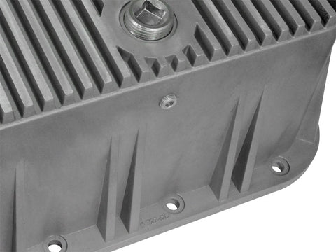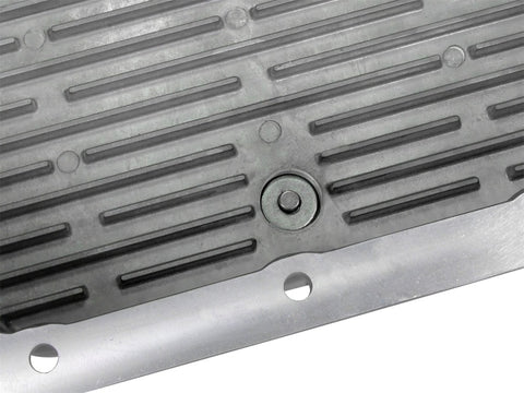 aFe POWER Street Series deep transmission pan brings performance engineering to the protection of your trucks transmission. This transmission pan has additional capacity for 3 to 4 more quarts over stock at the factory line, a magnetic drain plug and a 1/8" NPT port for your temperature sensor. Built-in internal and external fins transfer heat from the fluid to the outside air for maximum cooling. This transmission pan is constructed out of durable die-cast A380 aluminum with reinforced ribs and a raw finish with machined accents for maximum strength and styling.