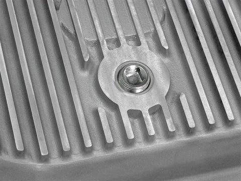 aFe POWER Street Series deep transmission pan brings performance engineering to the protection of your trucks transmission. This transmission pan has additional capacity for 3 more quarts over stock at the factory line, a magnetic drain plug and a 1/8" NPT port for your temperature sensor. Built-in internal and external fins transfer heat from the fluid to the outside air for maximum cooling. This transmission pan is constructed out of durable die-cast A380 aluminum with reinforced ribs and a raw finsh with machined accents for maximum strength and styling.