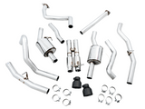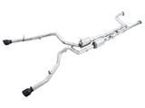 The 0FG is a dual 3” T304L stainless steel Cat Back configuration featuring a bespoke resonated H-pipe and AWE’s patented drone-canceling 180 Technology®. Together, combined with precision fitment, class-leading rigidity, and signature 5” slash-cut tips, you're looking at the Best Sounding Exhaust on the Planet™ for the RAM TRX. American-sourced T304L stainless steel with a wall thickness of .065” runs smoothly from front to back, connecting right after the factory emissions equipment. A resonated H-pipe tailored specifically for the 6.2L-packed TRX is met shortly after to provide an aggressive and rich muscle tone with minimal rasp. You're looking at the Diamond Black tips version of the exhaust, featuring aggressive 5”, double-walled slash-cut tips, and stamped AWE logos to let everyone know what team you're on. The TRX system by AWE is one of the most significant upgrades available for your TRX. Let's rumble.
